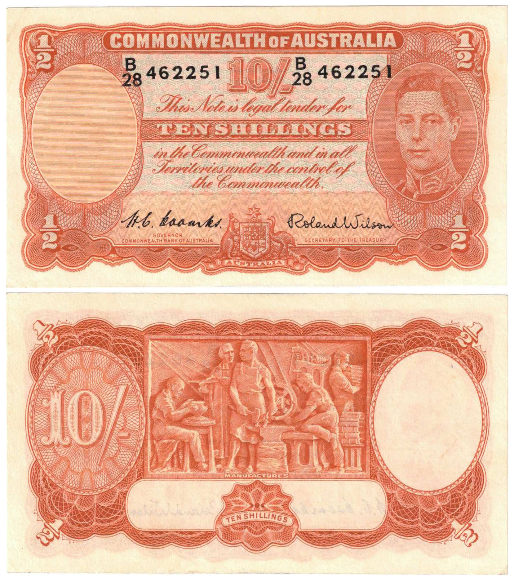 1952 Ten Shillings Coombs/Wilson R15 About Uncirculated Banknote