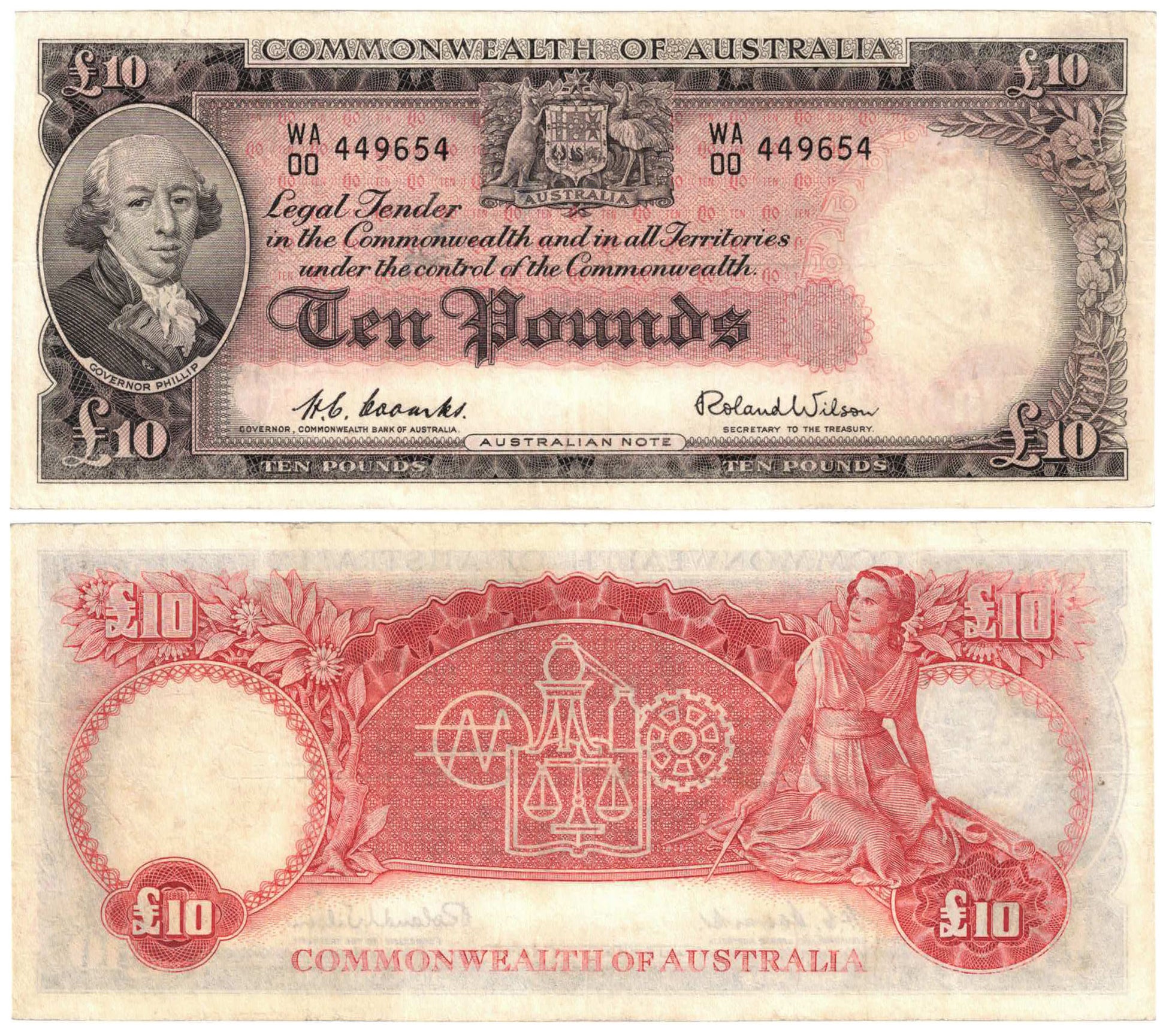 1954 Ten Pounds Coombs/Wilson R62F First Prefix WA/00 Good Fine Banknote