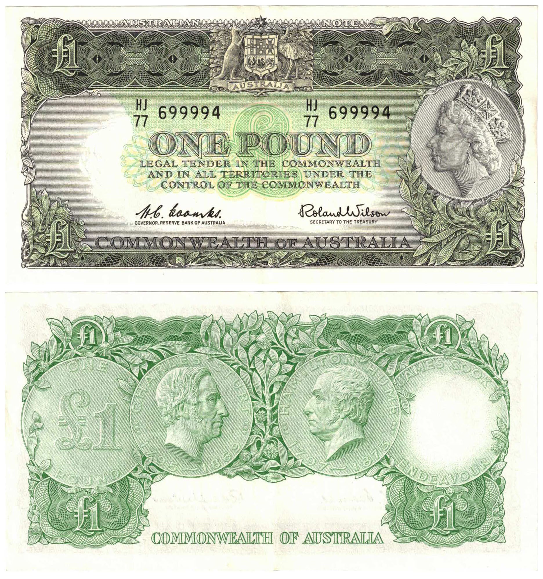 1961 One Pound Coombs/Wilson R34 Reserve Bank of Australia About Uncirculated Banknote
