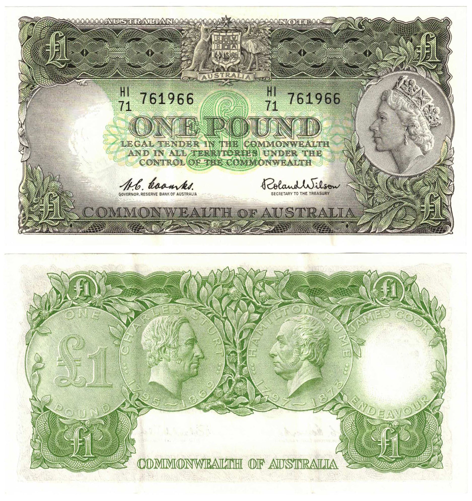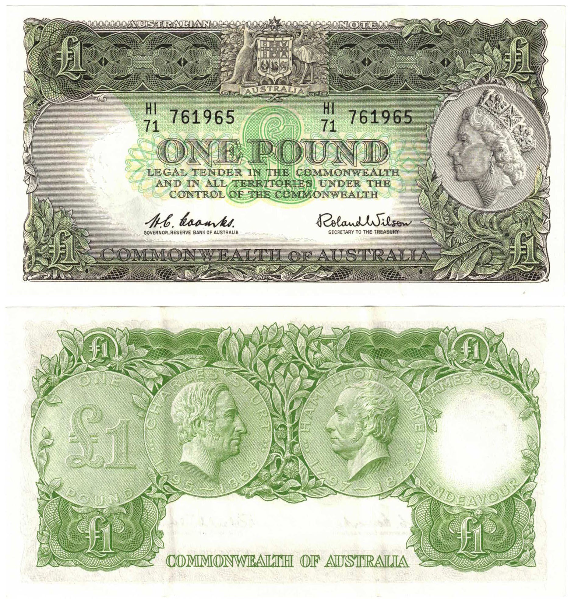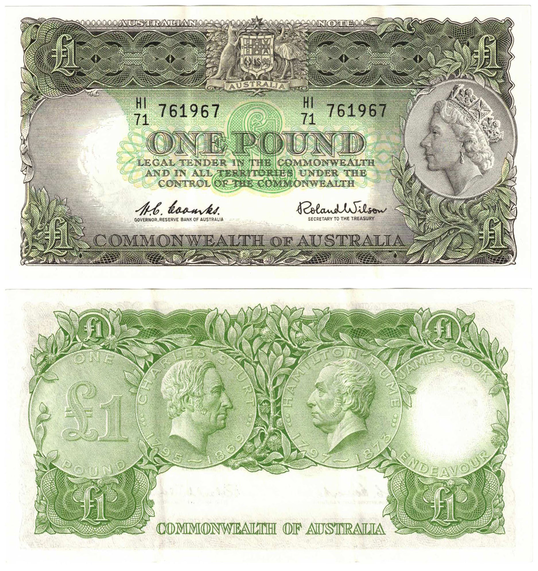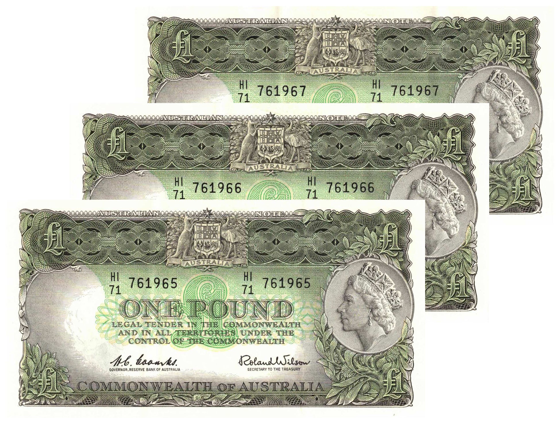 1961 One Pound Coombs/Wilson R34 Reserve Bank of Australia Extremely Fine Consecutive Trio of Banknotes