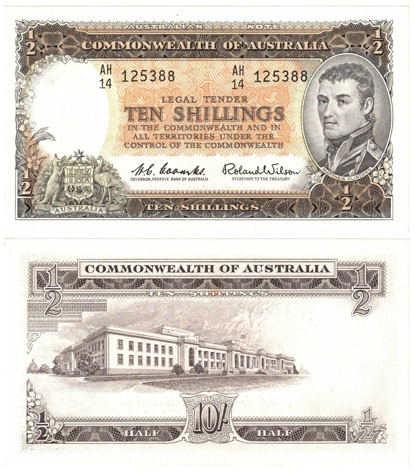 1961 Ten Shillings Coombs/Wilson R17 Reserve Bank of Australia About Uncirculated Banknote
