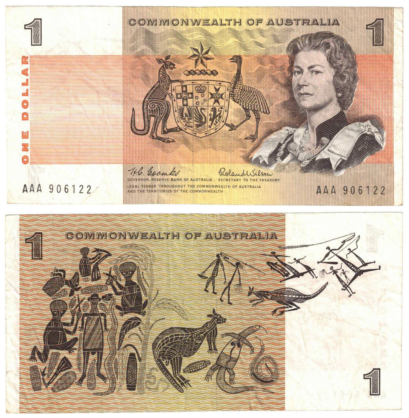 1966 $1 Coombs/Wilson R71F First Prefix AAA Good Fine Banknote