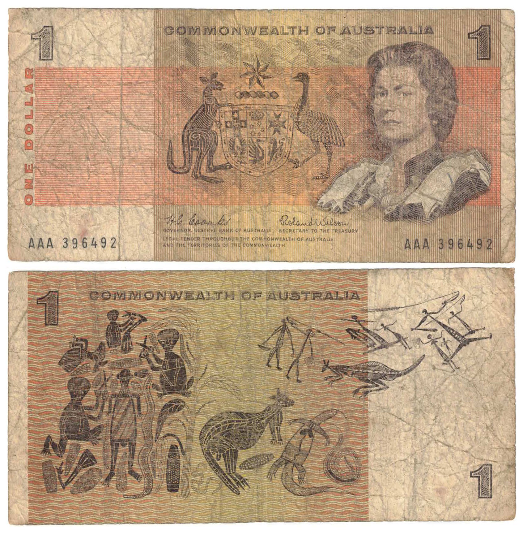 1966 $1 Coombs/Wilson R71F First Prefix AAA Very Good Banknote