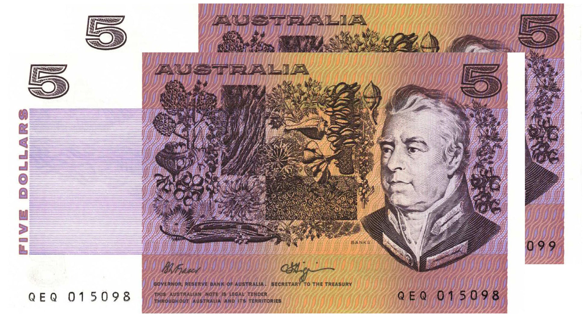 1990 $5 Fraser/Higgins R212 Uncirculated Consecutive Pair of Banknotes