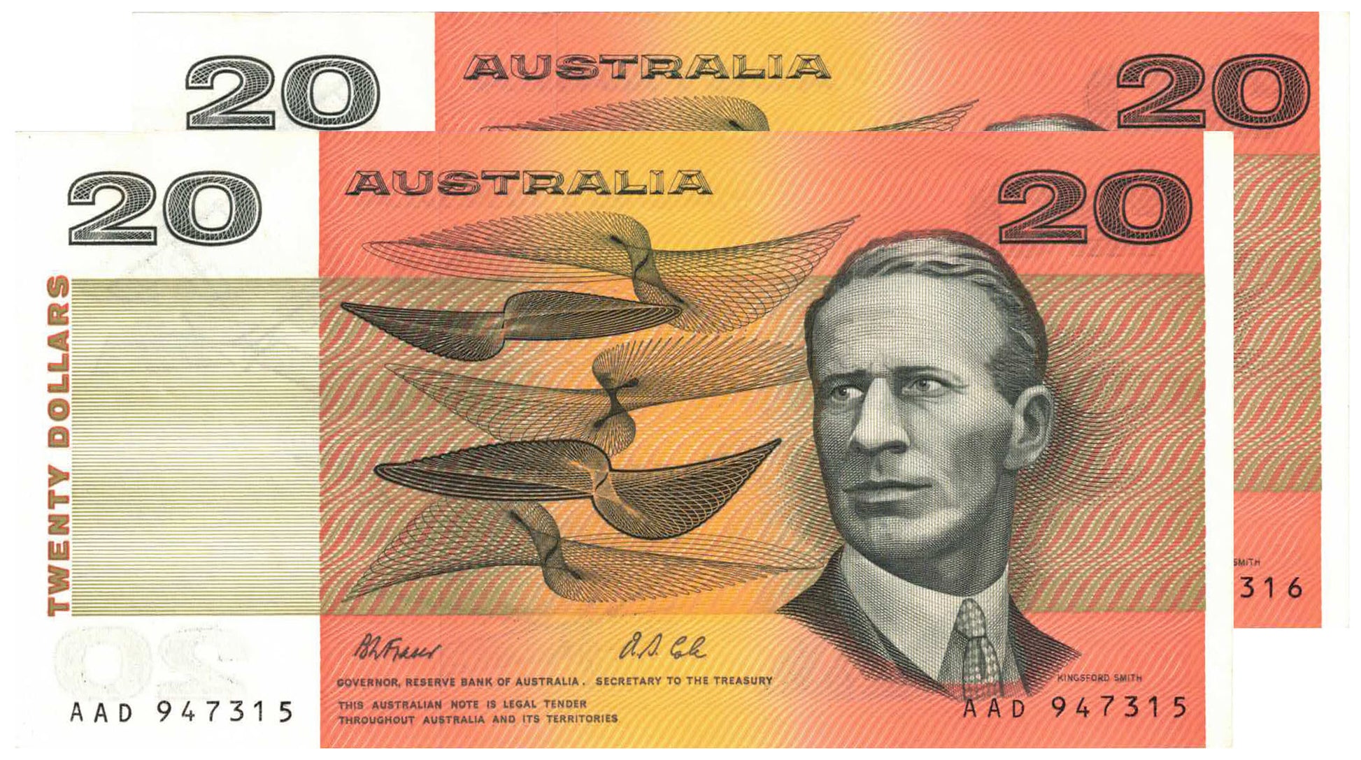 1991 $20 Fraser/Cole R413 Uncirculated Consecutive Pair of Banknotes