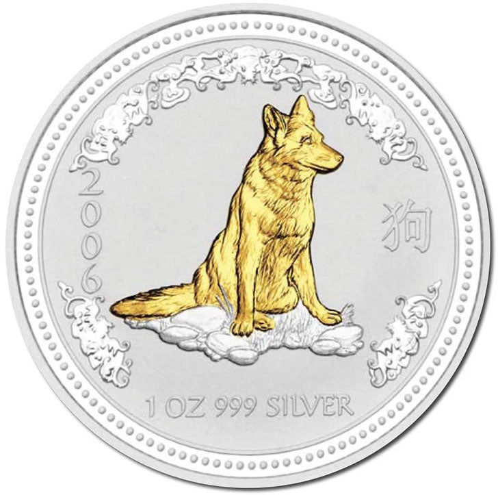 2006 $1 Year of The Dog 1oz Silver Gilded Coin