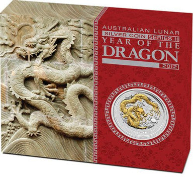 2012 $1 Lunar Year of The Dragon 1oz Silver Gilded Coin