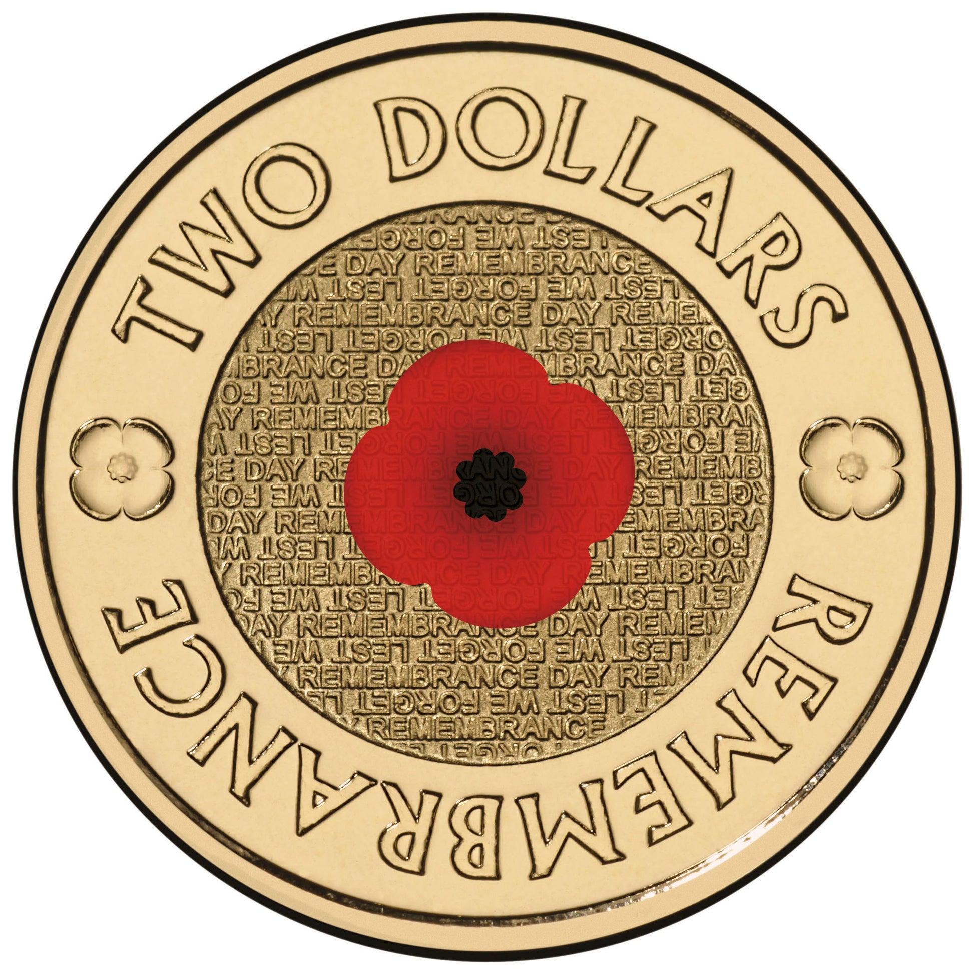 2012 $2 Remembrance Day Coloured Uncirculated Mint Roll