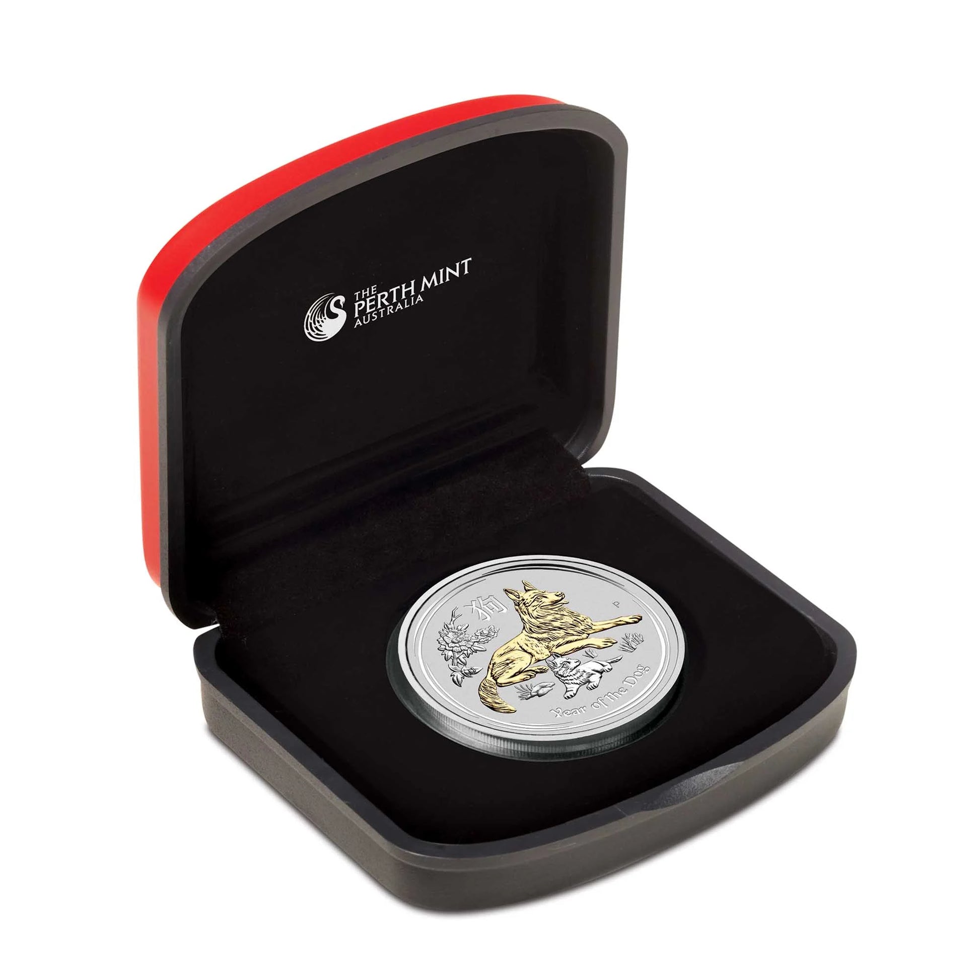 2018 $1 Lunar Year of The Dog 1oz Silver Gilded Coin