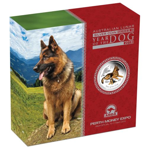 2018 $2 ANDA Perth Lunar Year of The Dog 2oz Silver Coloured Proof Coin