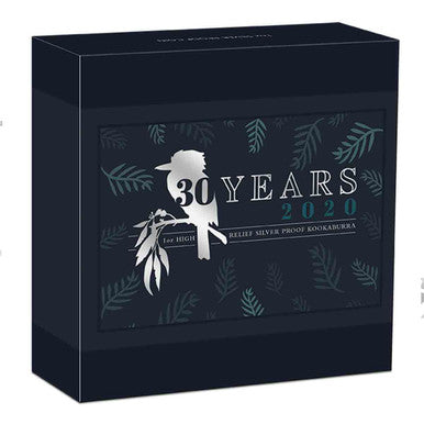 2020 $1 Australian Kookaburra 30 Years 1oz Silver High Relief Proof Coin