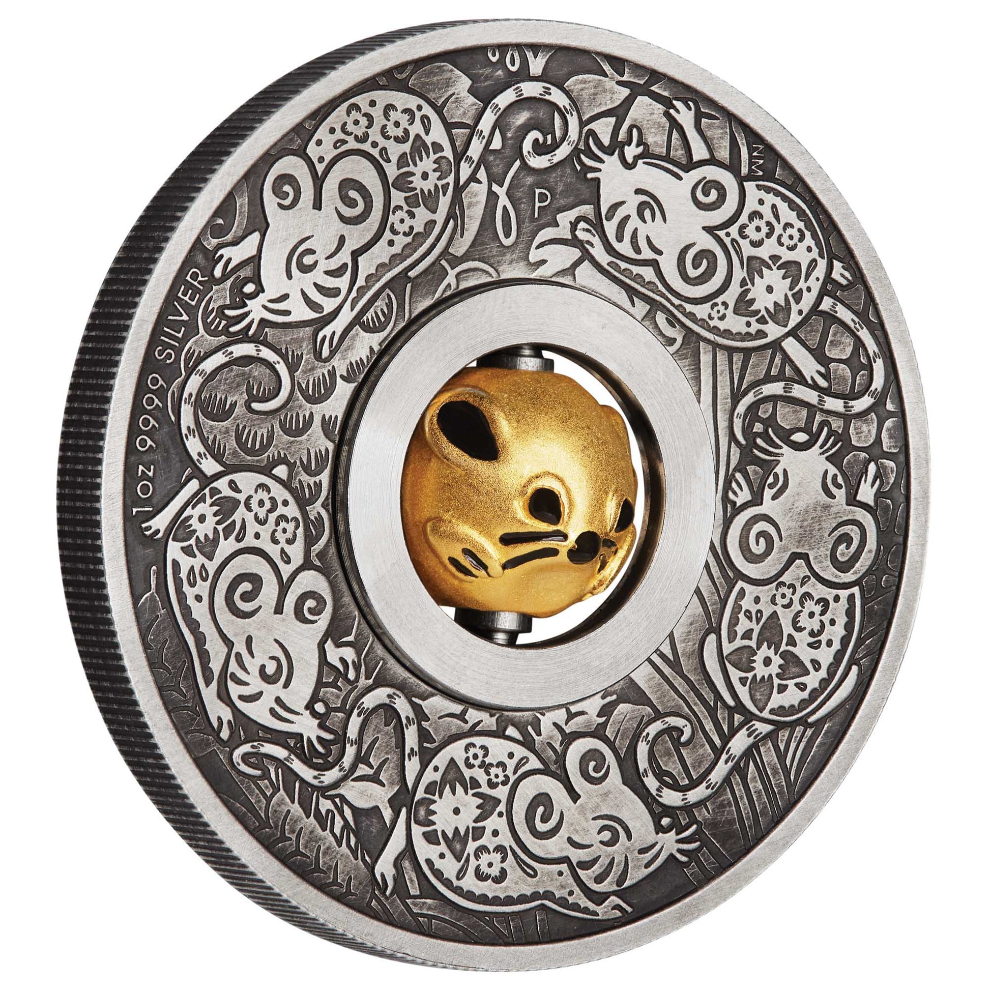 Tuvalu 2020 $1 Lunar Year of The Mouse Rotating Charm 1oz Silver Antiqued Coin
