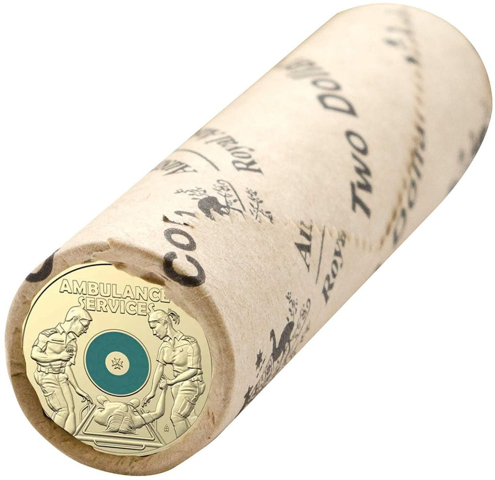 Officially released by the Royal Australian Mint, this roll consists of twenty-five (25) 2021 $2 Australian Ambulance Services Coloured Uncirculated coins.