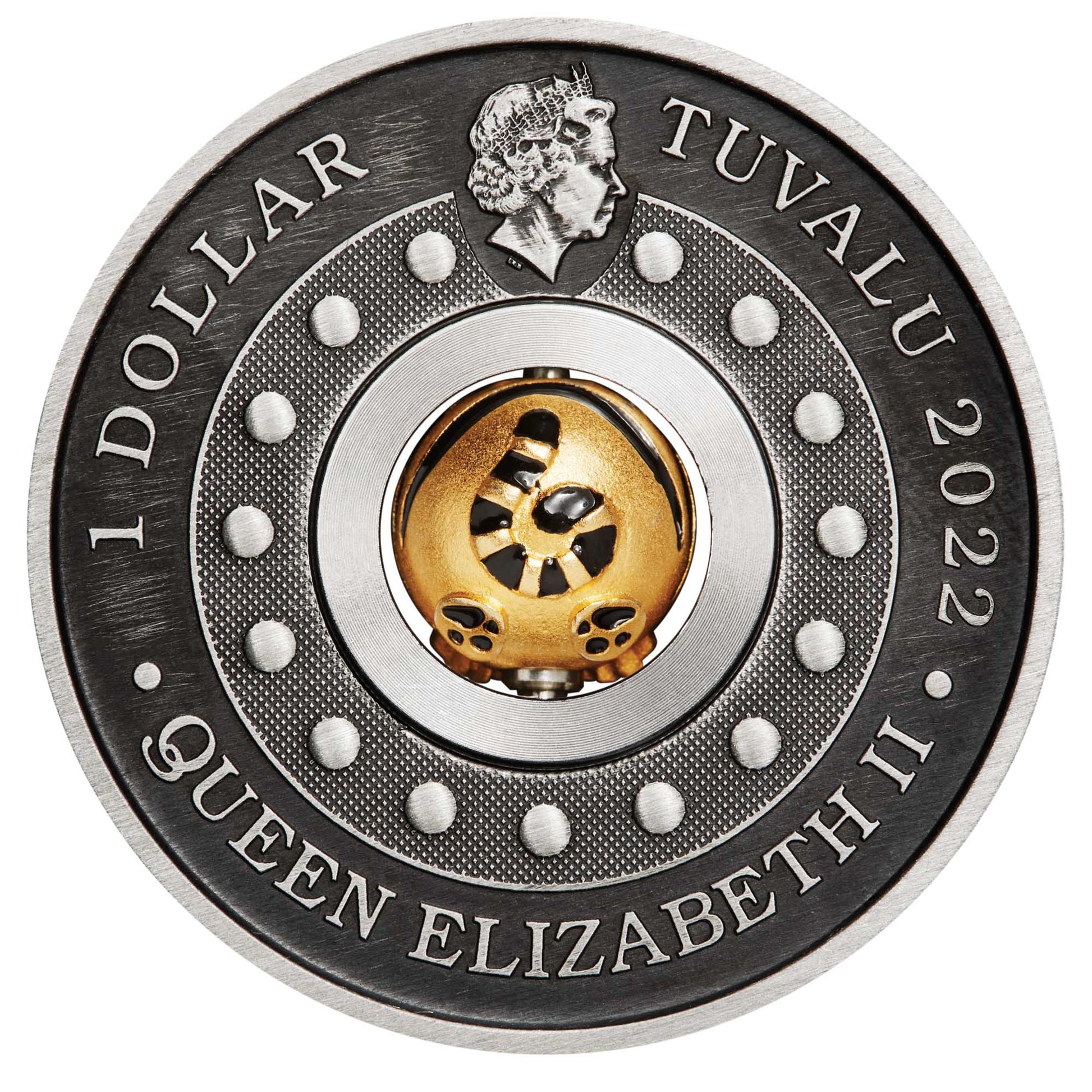 Tuvalu 2022 $1 Lunar Year of The Tiger Rotating Charm 1oz Silver Antiqued Coin