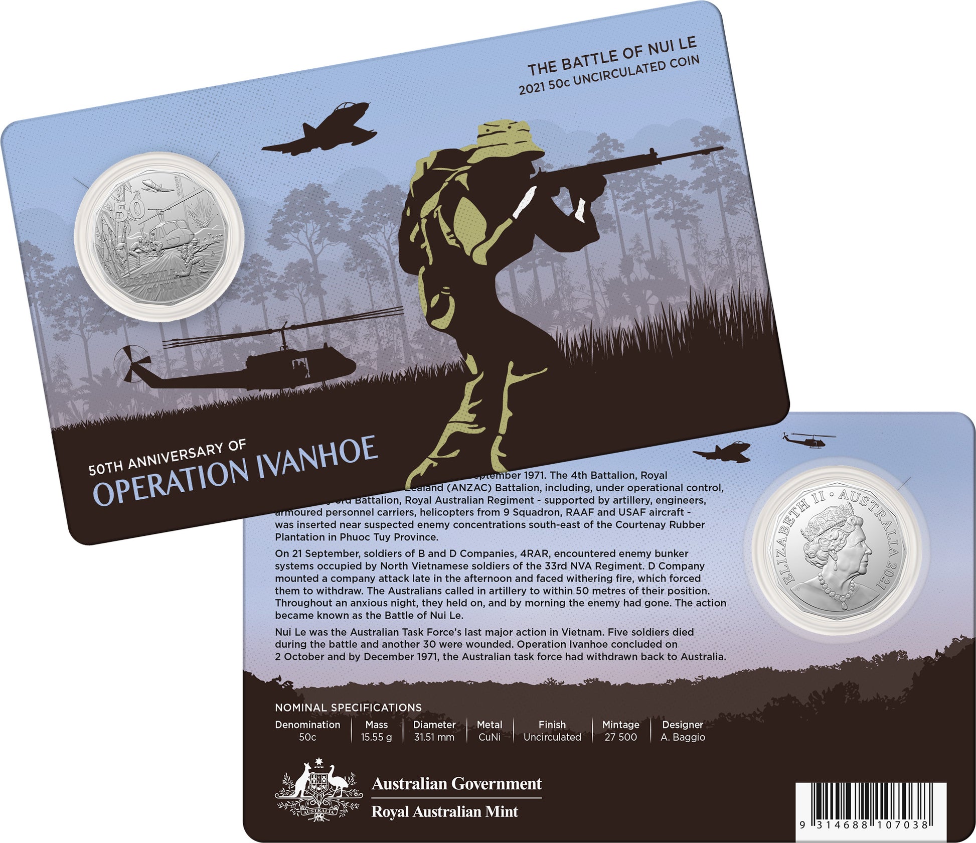 2021 50c Operation Ivanho 50th Anniversary of the Battle of Nui Le Uncirculated Coin