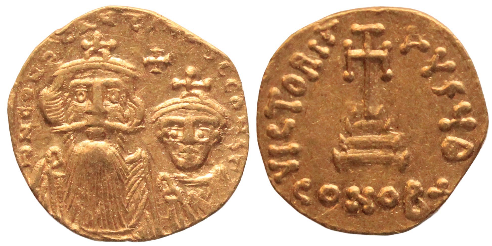 Byzantine, Constans II with Constantine IV 641-668AD Gold Solidus EF