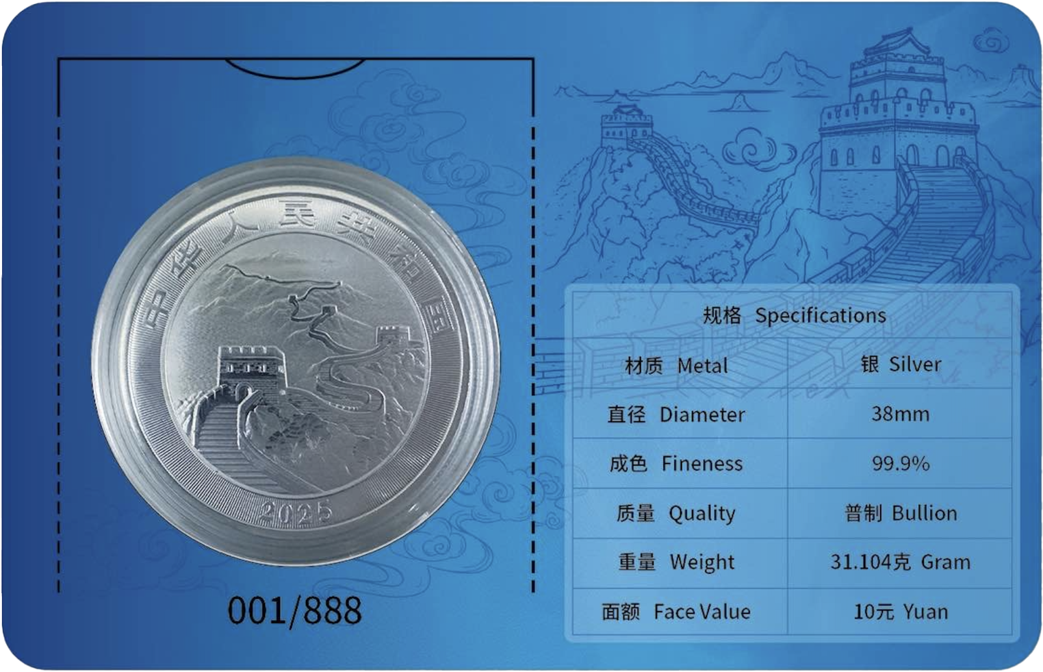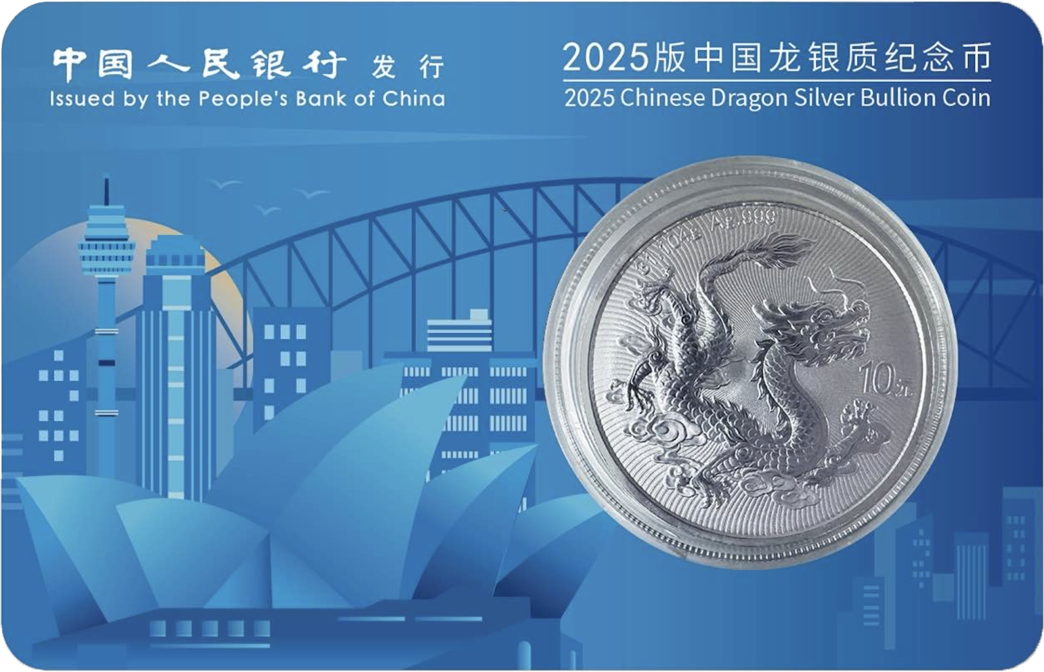 China 2025 10 Yuan Chinese Dragon 1oz Silver Bullion Coin