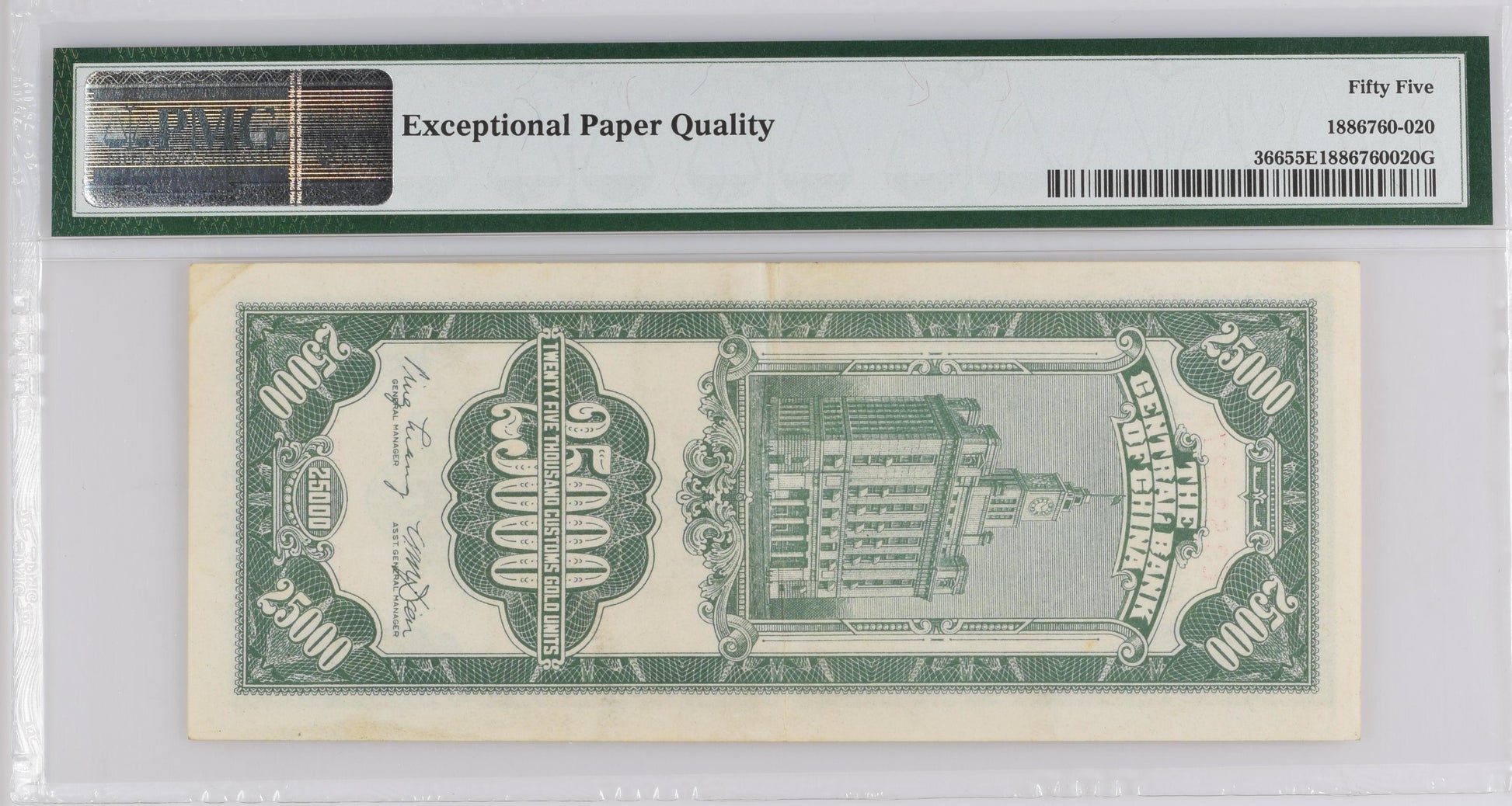 China Central Bank of China 1948 25000 Customs Gold Units About Uncirculated PMG 55 Banknote