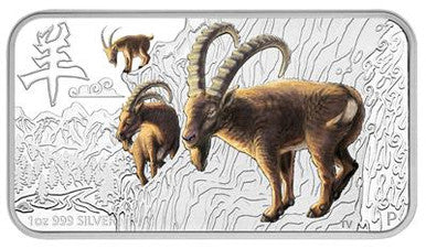 Cook Islands 2015 $1 Lunar Calendar Year of The Goat 1oz Silver Coloured Rectangle 4 Coin Proof Set