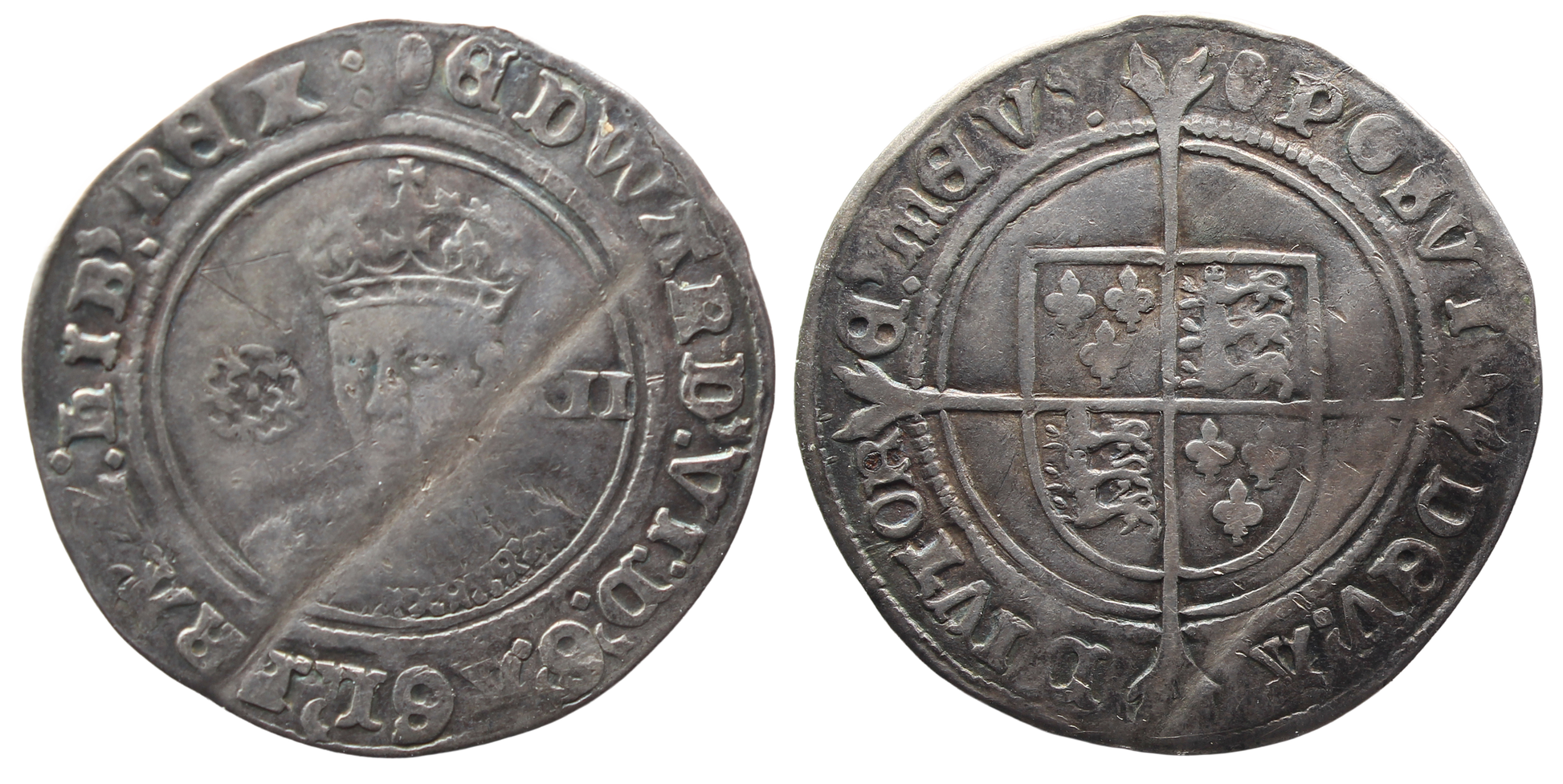 England Edward VI 1547-1553 Shilling aVF Bent flan