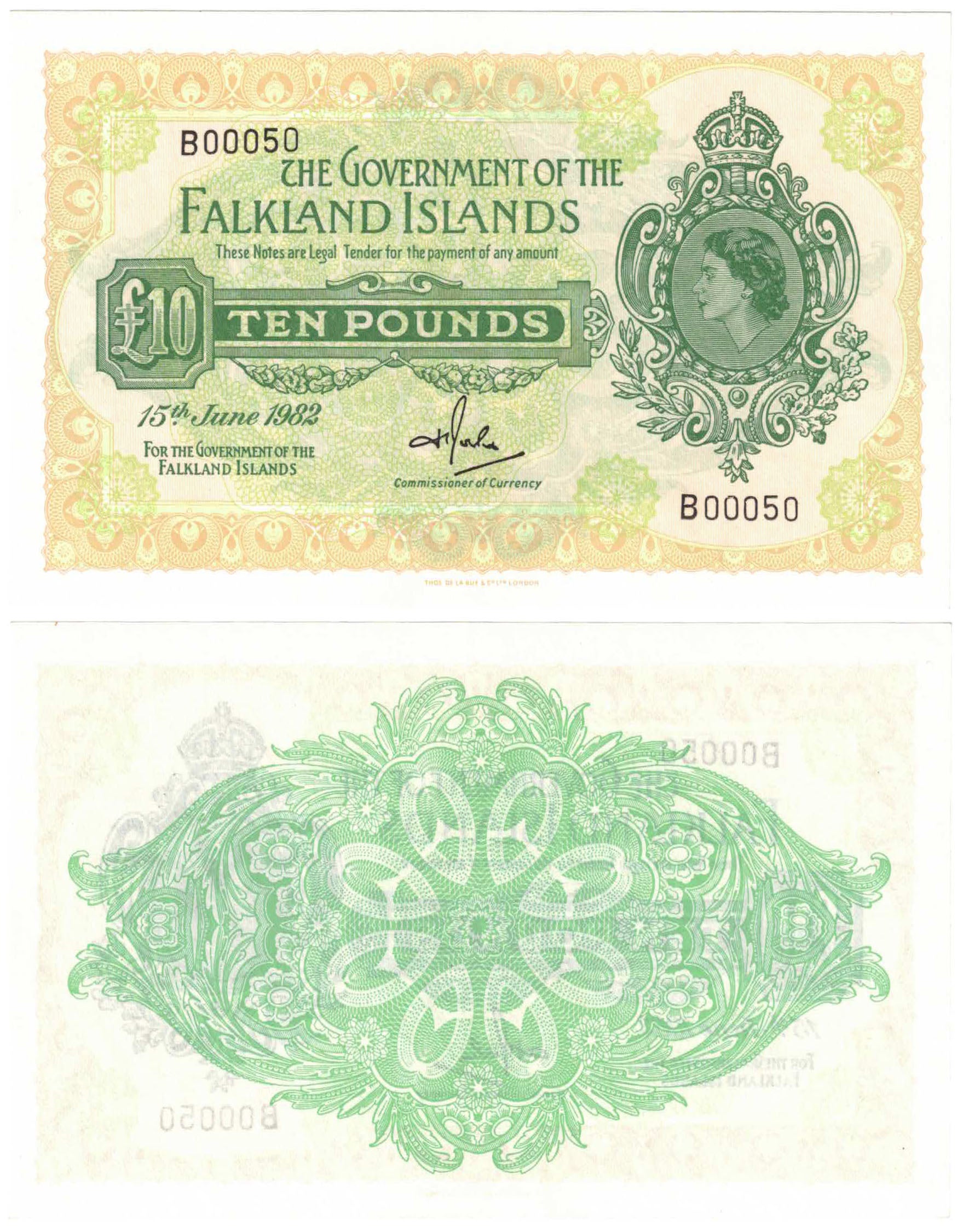Falkland Islands 1982 Ten Pounds #11 Choice Uncirculated Banknote