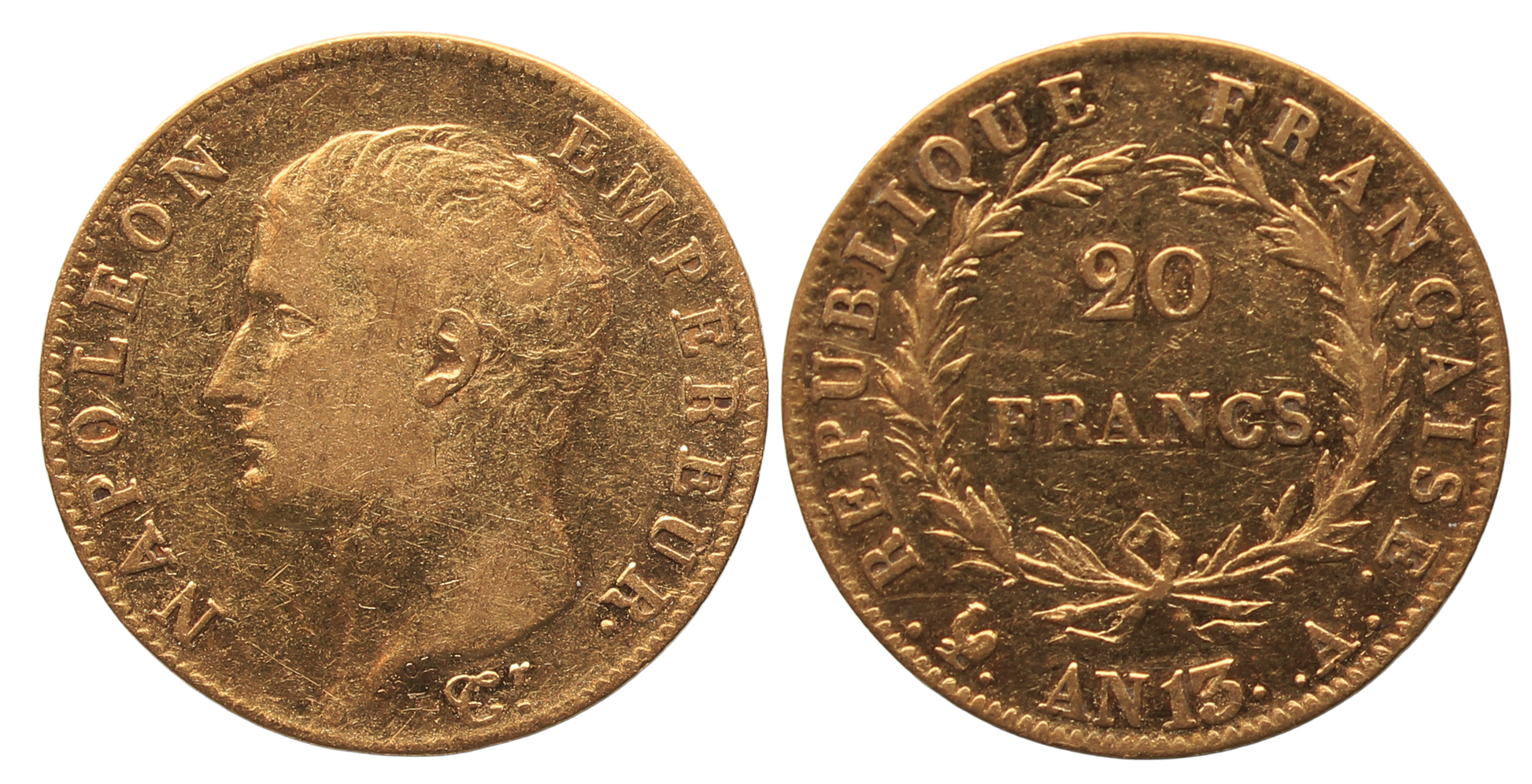 France, 1804/5 AN13A, Napoleon Twenty Francs, Fine