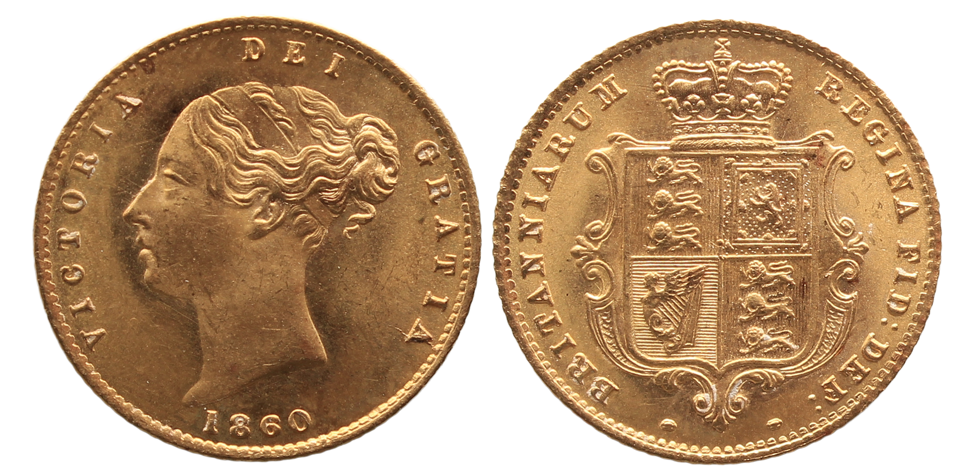 GB, 1860 Victoria Young Head Half Sovereign Choice UNC