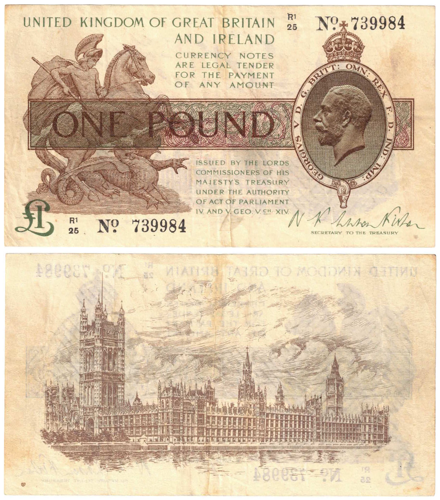 Great Britain 1928 One Pound #361a Good Fine Banknote