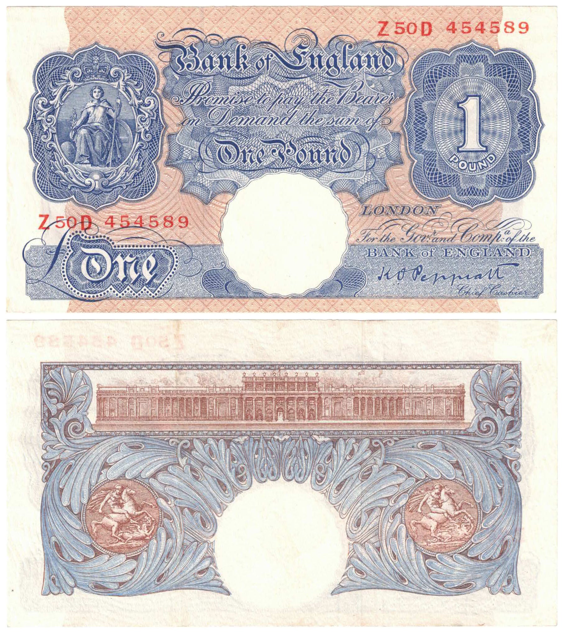 Great Britain (1940-48) One Pound Peppiatt #367a About Uncirculated Banknote