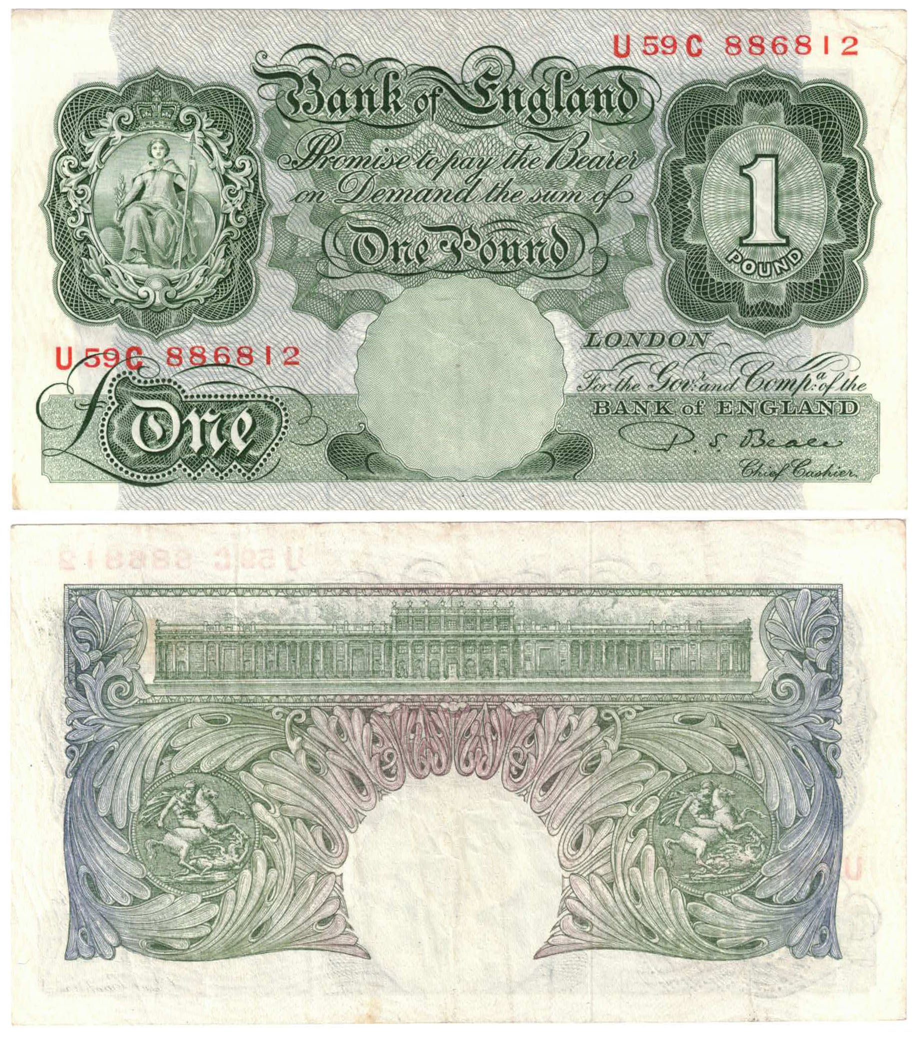Great Britain (1949-55) One Pound Beale #369b Very Fine Banknote