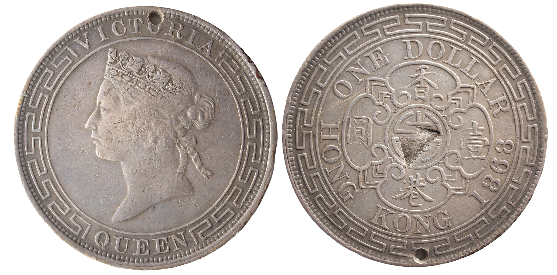 Hong Kong 1868 Dollar gFine Holed and punched