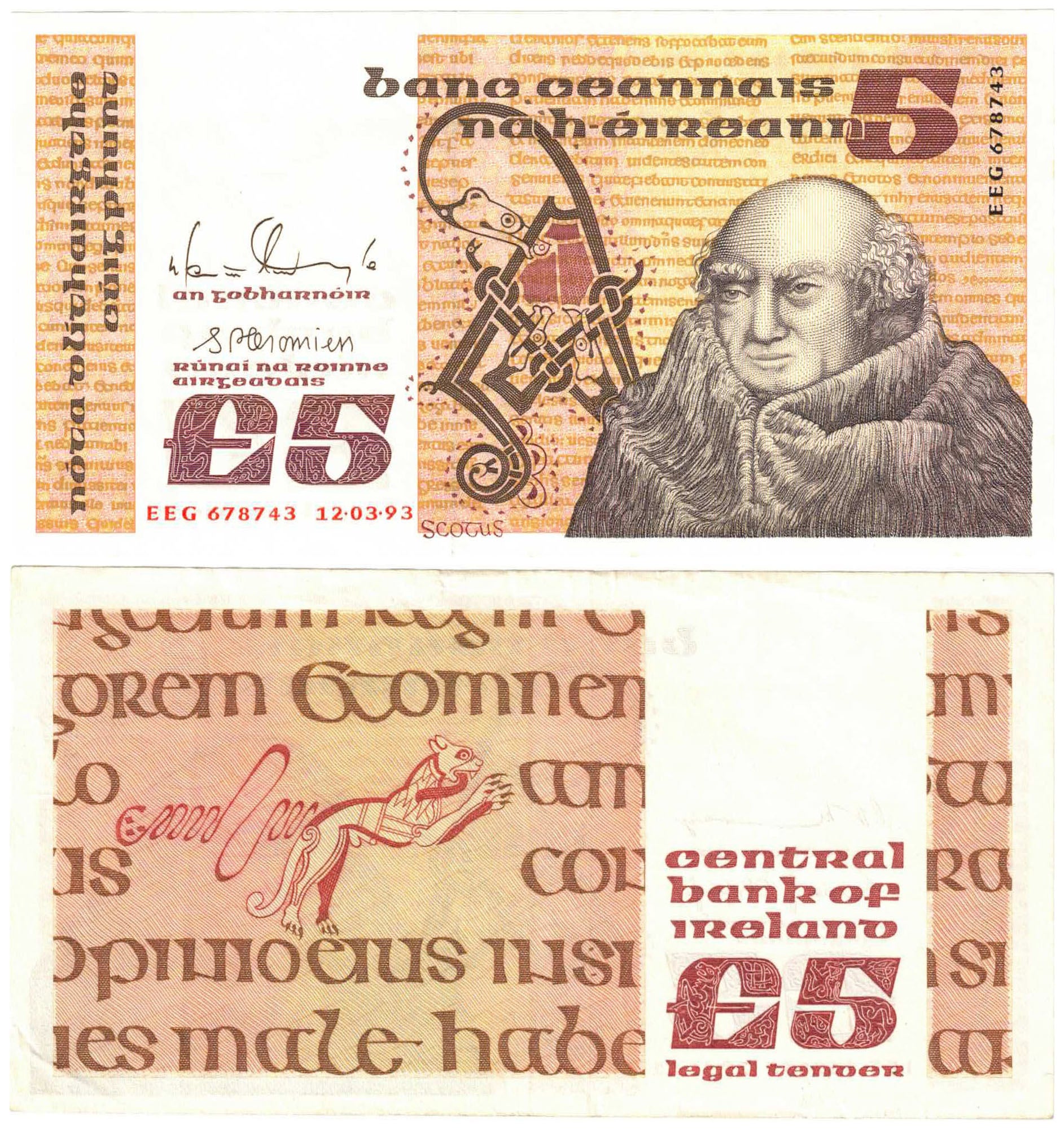 Ireland 1993 Five Pounds Doyle/Cromien #7/e About Uncirculated Banknote