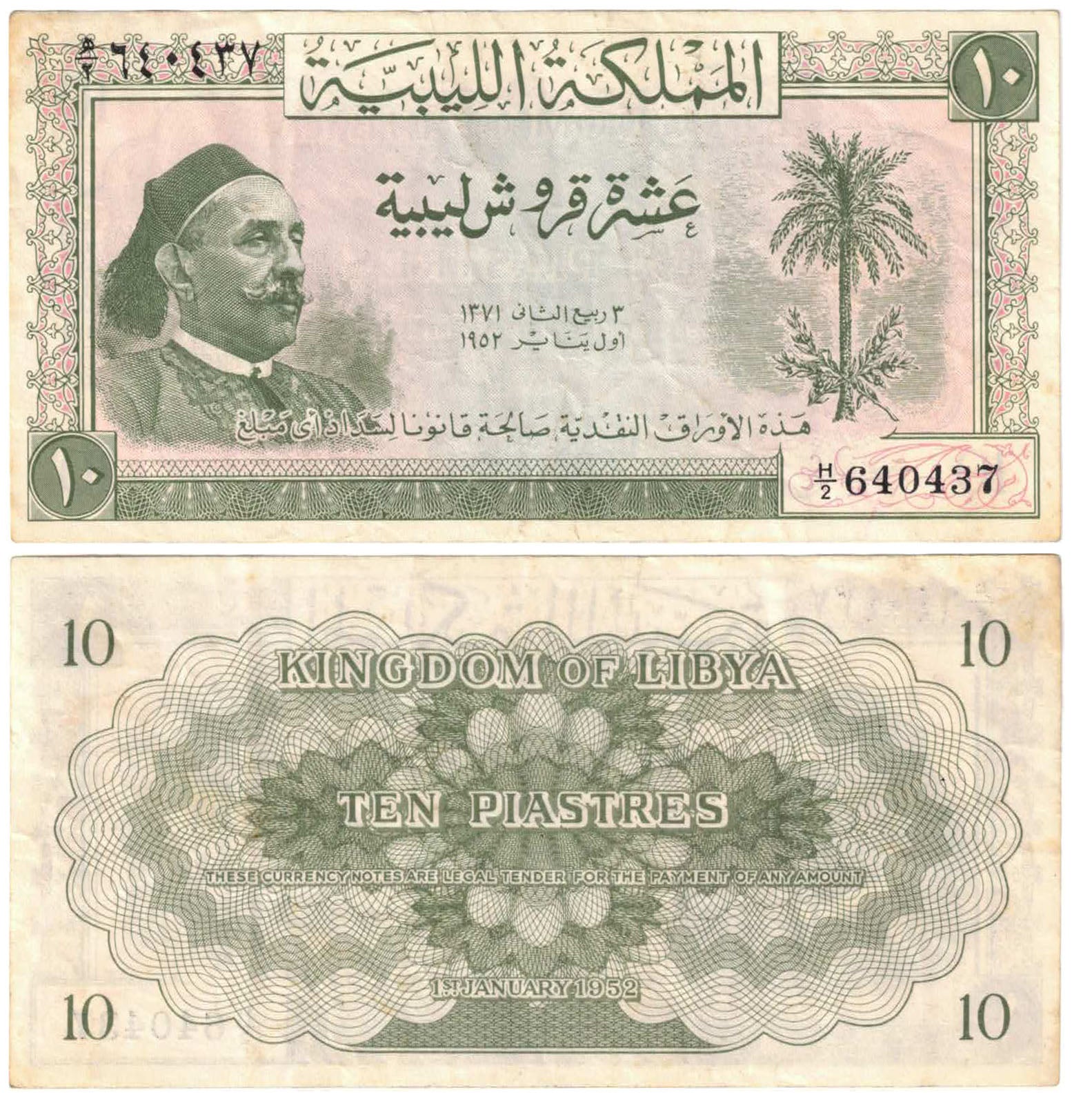 Libya 1952 Ten Piastres #13 Extremely Fine Banknote