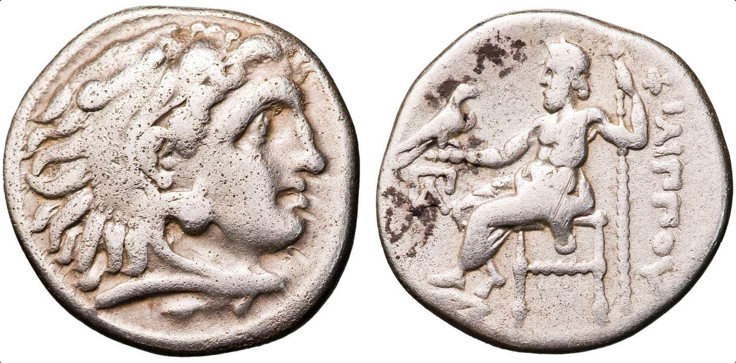 Macedonian Kingdom, Philip III 323-317BC silver Drachm , Obv: Heracles right wearing Lion skin, Rev: Zeus enthroned left holding eagle and sceptre 4.1gms (S.6751) aVF