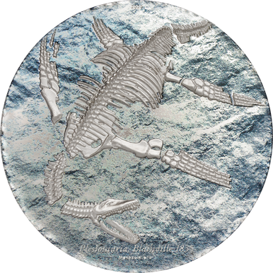 Mongolia 2020 2000 Togrog Prehistoric Beasts Plesiosauria 3oz Silver Coloured Proof Coin