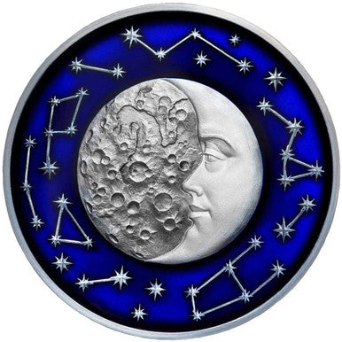 Niue 2017 $5 Celestial Bodies Moon 2oz Silver Coloured Antiqued Coin