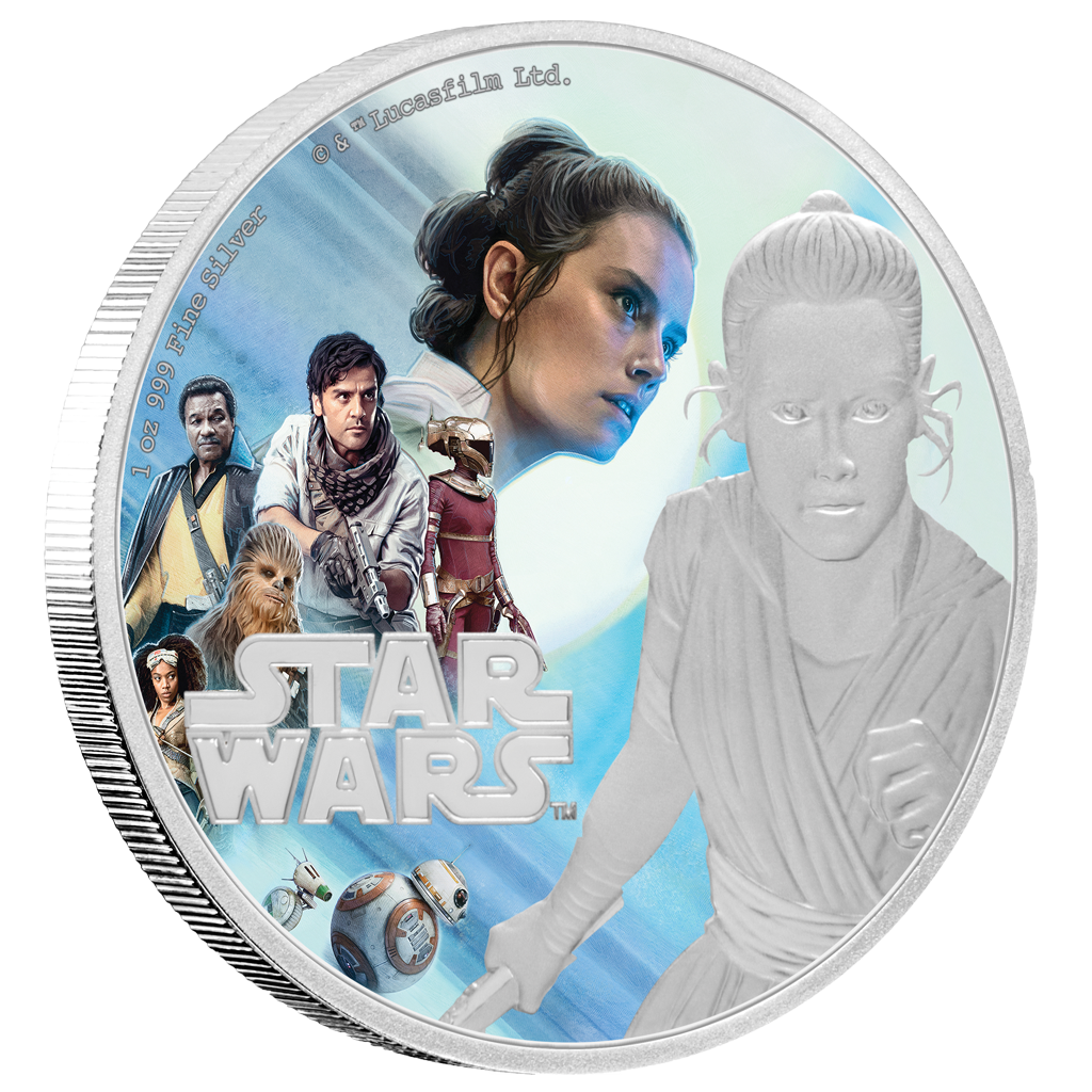 Niue 2019 $2 Star Wars The Rise of Skywalker Rey 1oz Silver Coloured Proof Coin