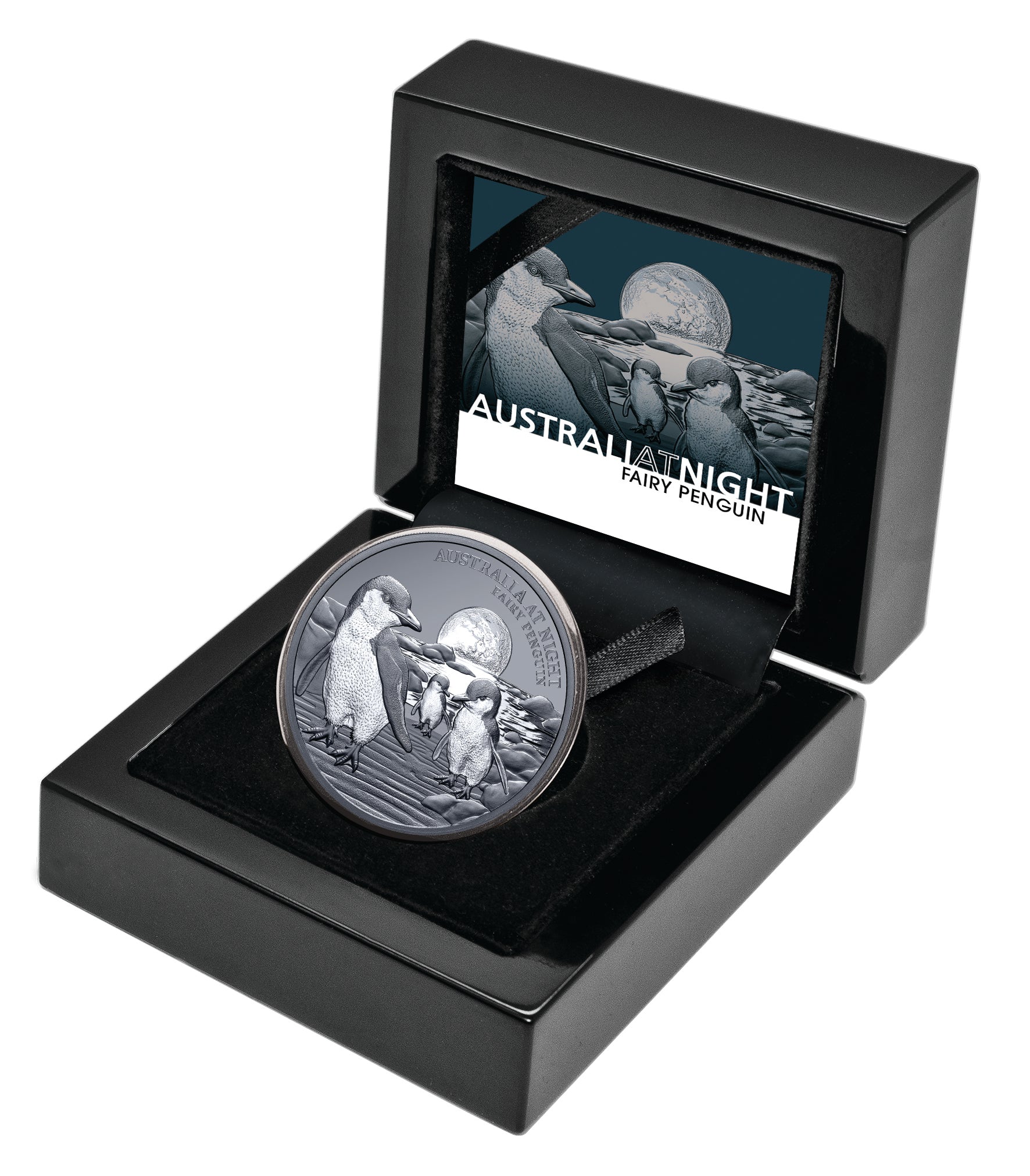 Niue 2024 $1 Australia At Night Fairy Penguin 1oz Silver Black Proof Coin