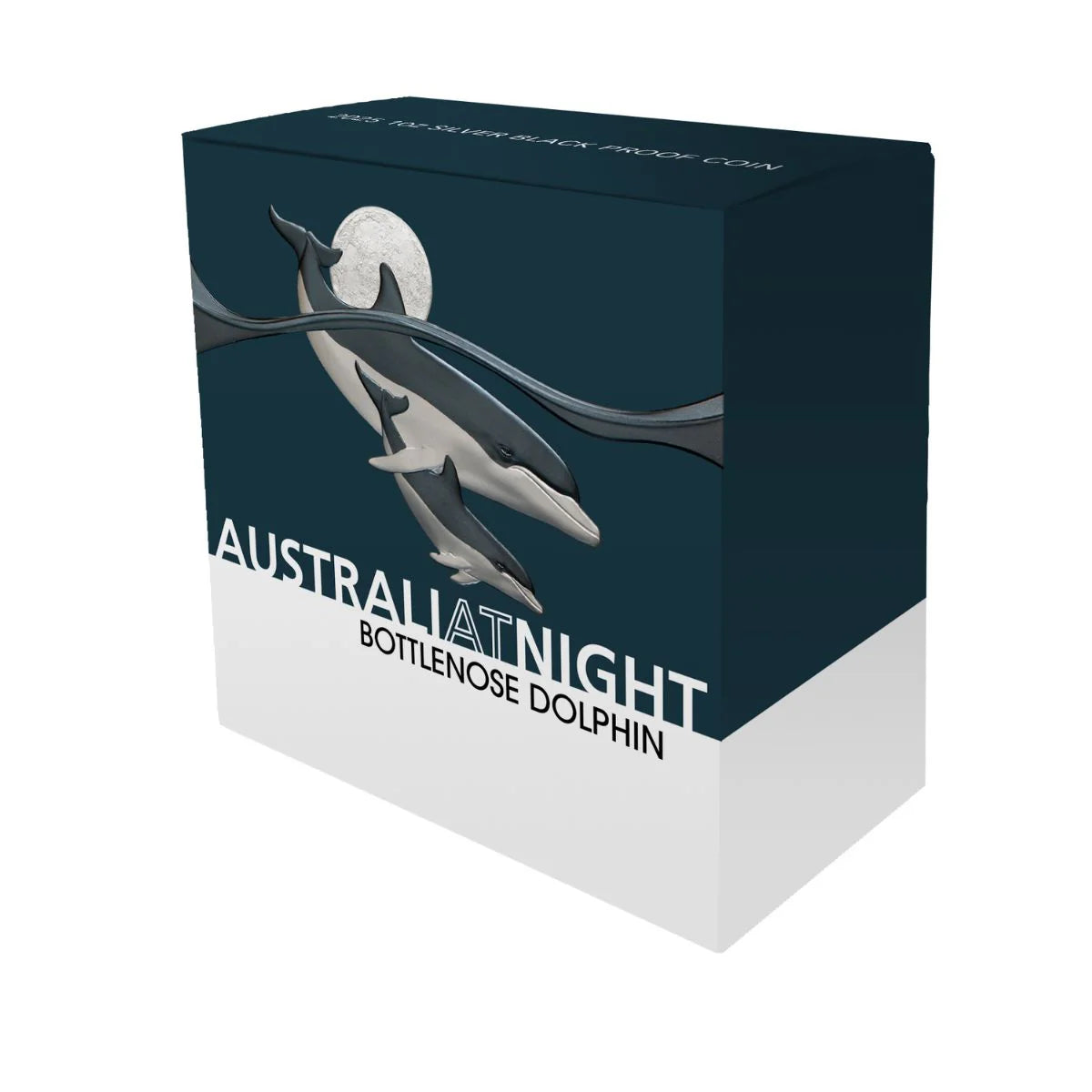 Niue 2025 $1 Australia At Night Bottlenose Dolphin 1oz Silver Black Proof Coin