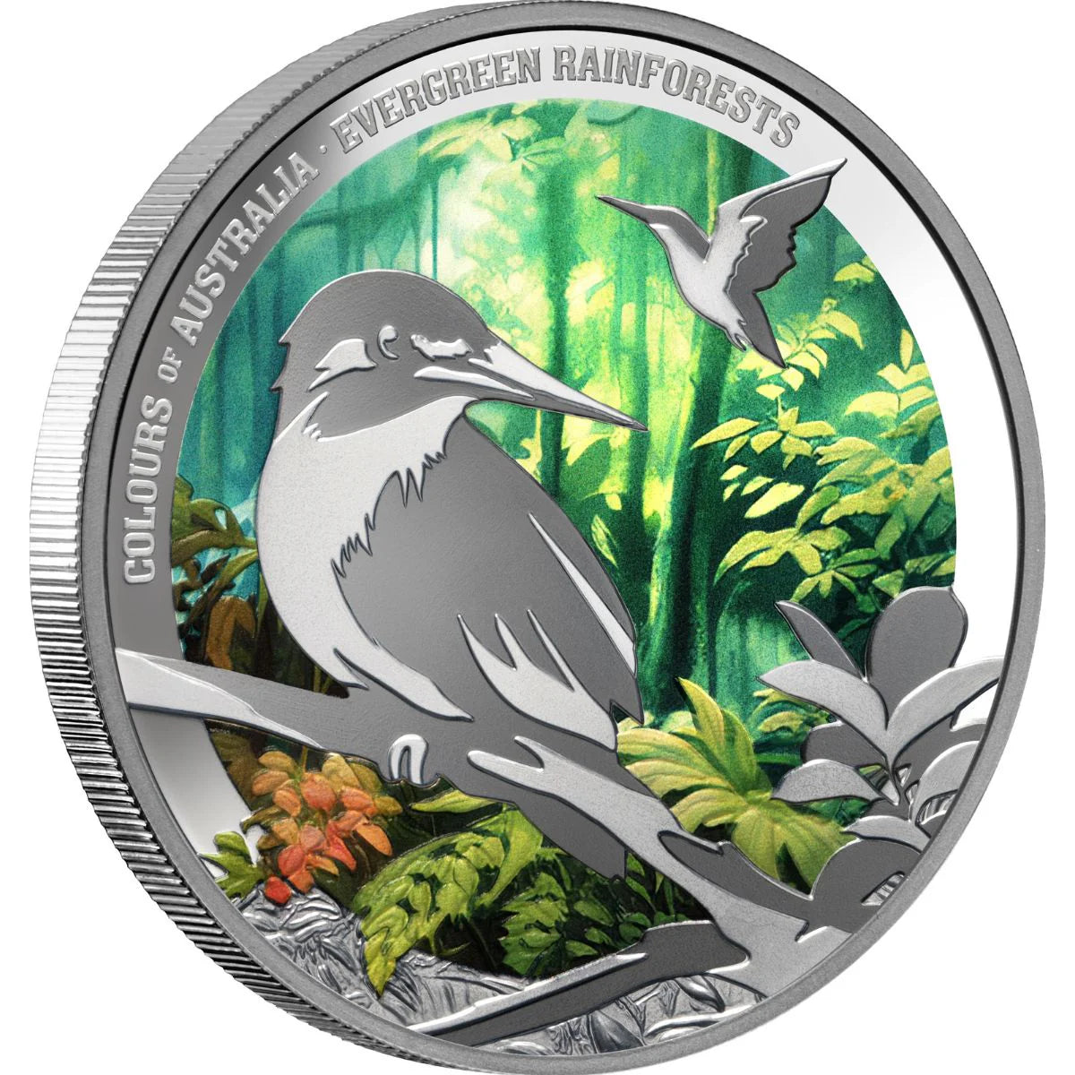 Illuminating nature’s artistry, the lively rainforests of Australia showcase a breathtaking display of lush sceneries painted, in an array of evergreen hues. This vibrant masterpiece embodies a fusion of brilliant colour and a meticulously crafted design encapsulated within one ounce of pure silver.