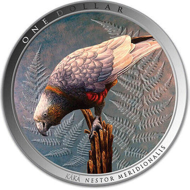 NZ 2021 $1 Kākā 1oz Silver Coloured Proof Coin