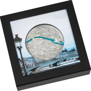 Palau 2021 $20 Tiffany Art Metropolis Paris with Blue Stained Glass 3oz Silver Proof Coin