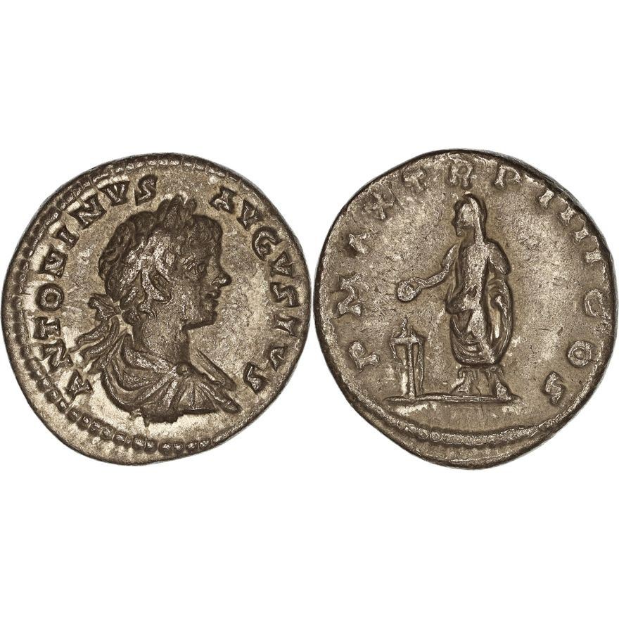 Roman Empire, Caracalla, Silver Denarius, 201 AD, nVF