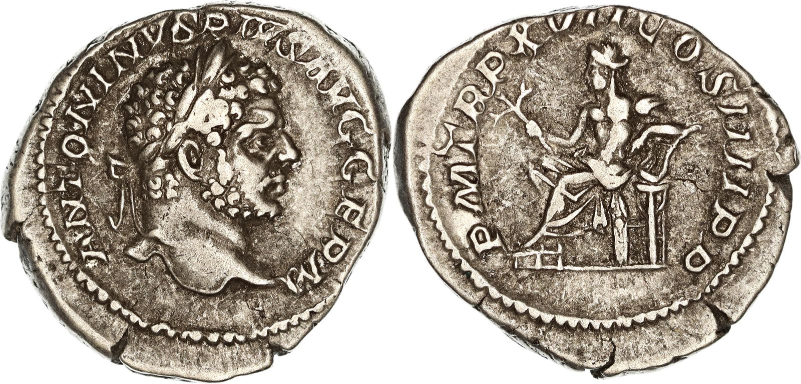 Roman Empire, Caracalla, Silver Denarius, 214AD, nVF