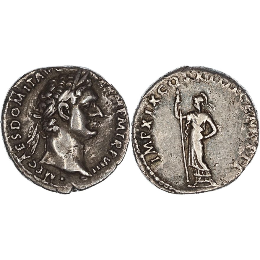 ROMAN IMPERIAL, FLAVIAN, Domitian (as Augustus 81-96 AD), Silver Denarius (3.20g, 18mm), Rome mint 88-89 AD. Obv. Laureate head right, "IMP CAES DOMIT AVG GERM P M TR P VIII". Rev. Minerva stands left, "IMP XIX COS XIIII CENS P P P". RIC 670; RSC 252. Several light marks, lightly cleaned in the past, toned, good Very Fine / Very Fine.