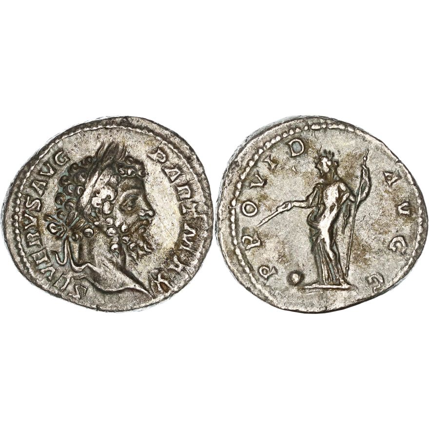 ROMAN IMPERIAL, SEVERAN, Septimius Severus (193-211 AD), Silver Denarius (2.91g, 18mm), Rome mint 198-200 AD. Obv. Laureate head right, "L SEPT SEV AVG IMP XI PART MAX". Rev. Providentia stands left, "PROVID AVGG". RIC 139; RSC 587. Quite toned, broad flan, some cleaning deposits through reverse devices, Very Fine / near Very Fine.