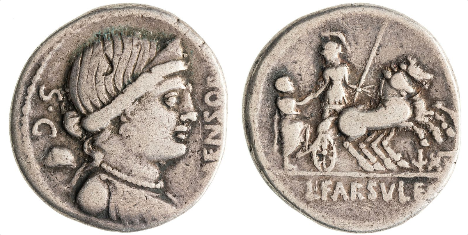 Roman Republic, Farsuleia, Silver Denarius, 75 BC, Good Fine