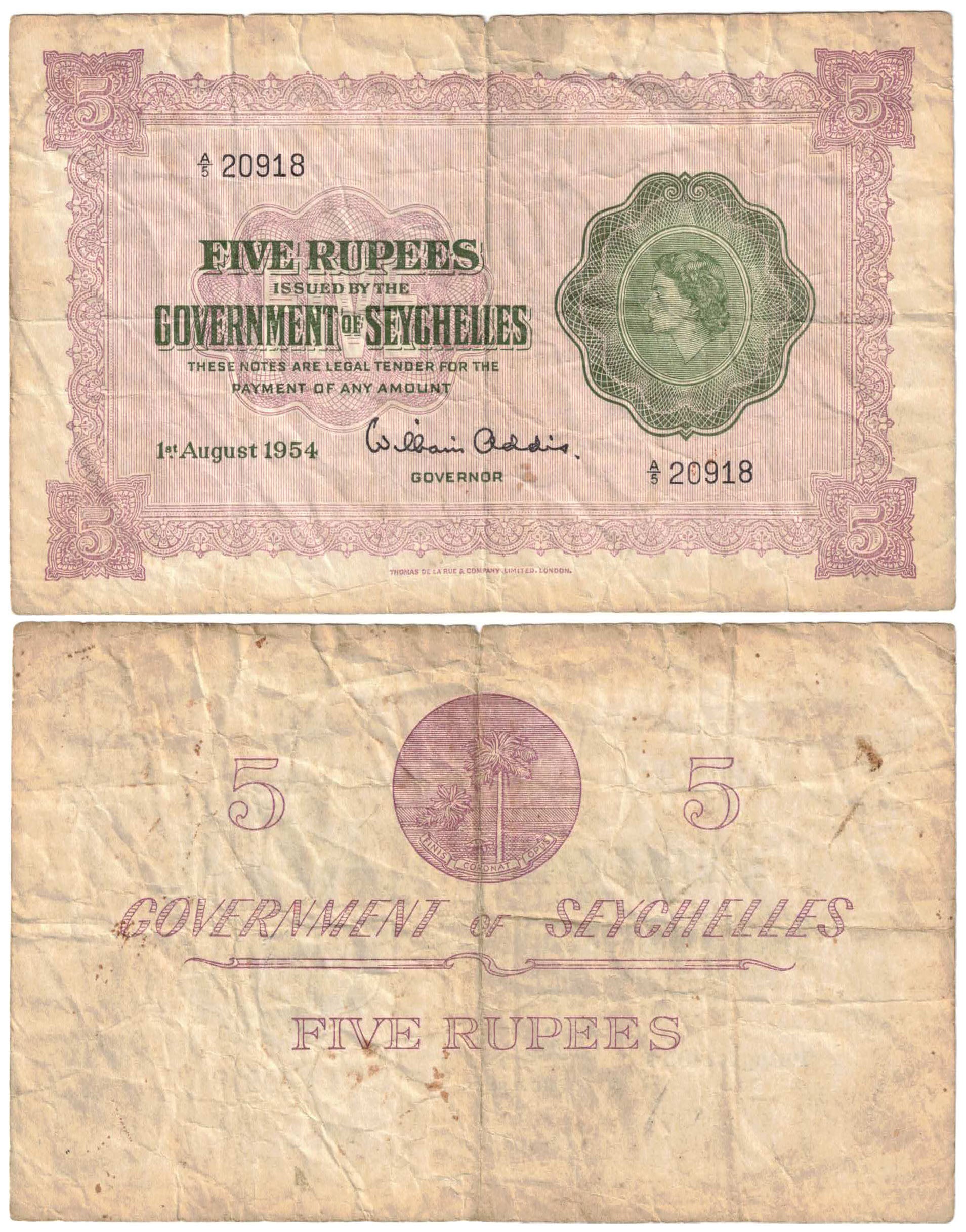 Seychelles 1954 Five Rupees #12a Fine Banknote