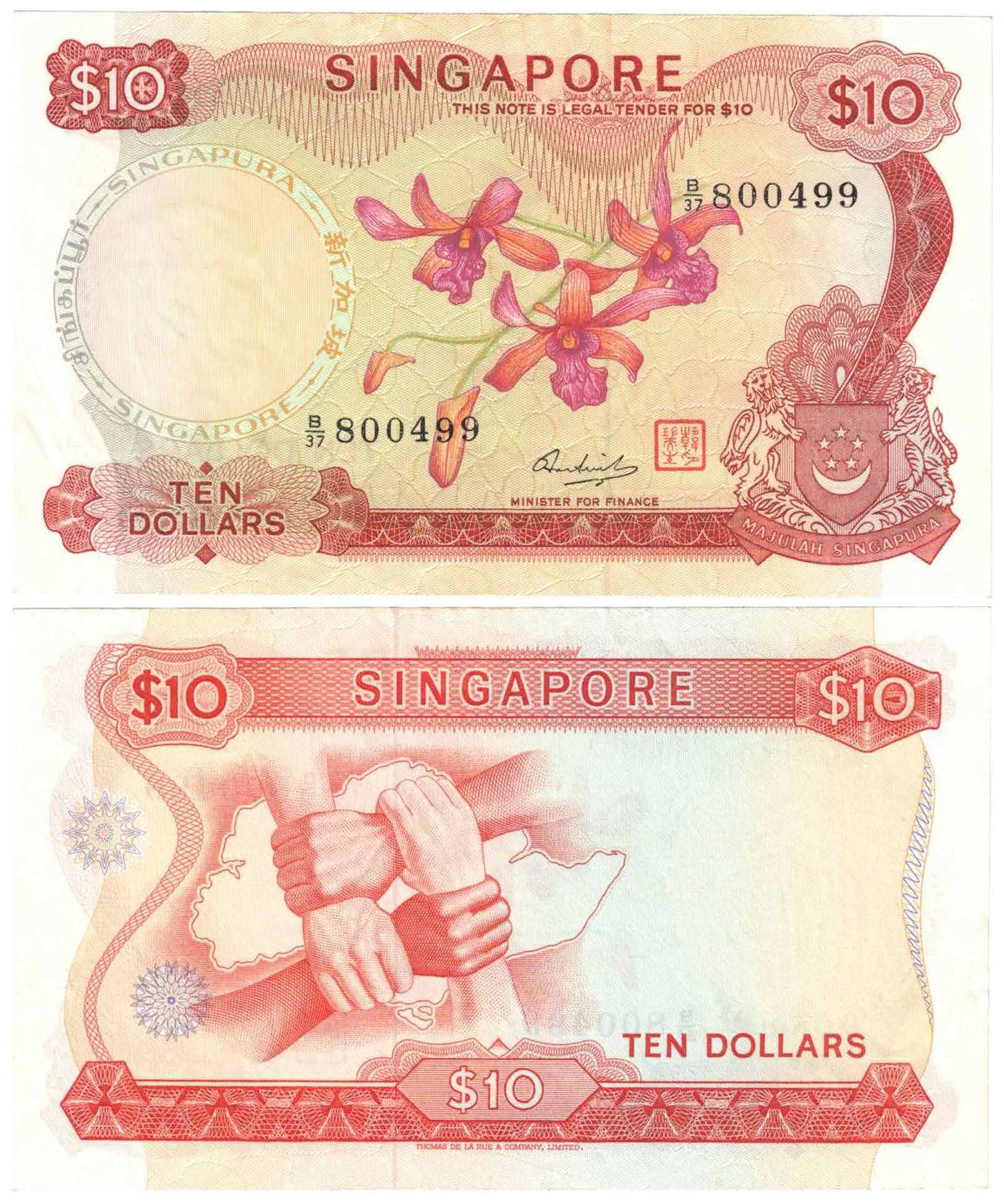 Singapore 1973 Ten Dollars Hon Sui Sen #3d About Uncirculated Banknote