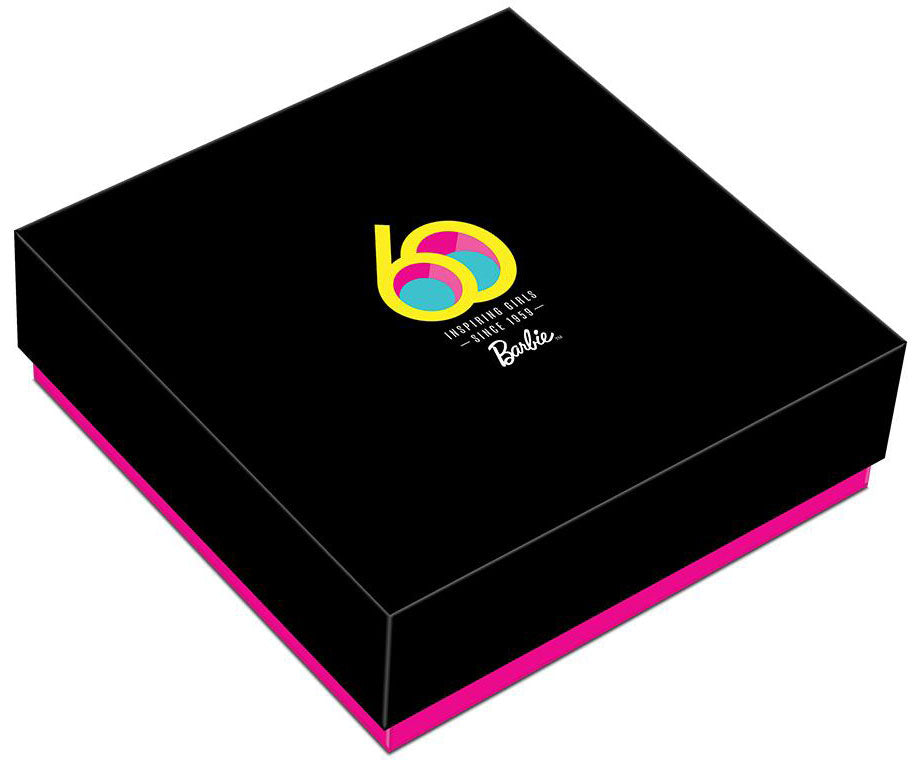 - Striking reverse design features Barbie’s™ original black-and-white swimsuit